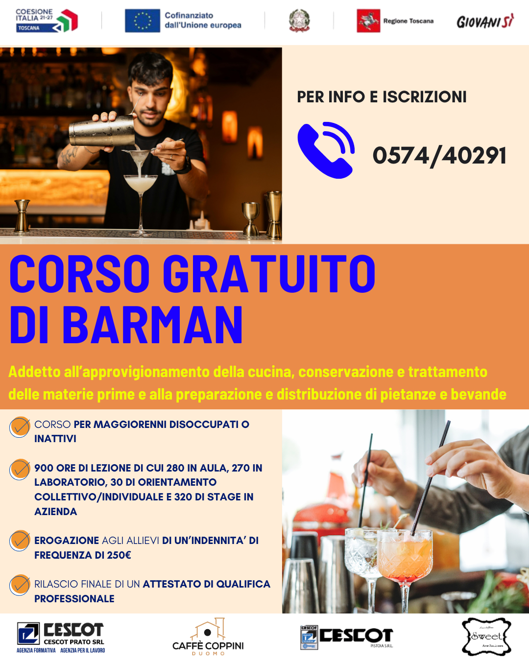 I partecipanti potranno lavorare all’interno di pubblici esercizi (bar, caffè, locali in generale) , più in generale, all’interno di attività di ristorazione